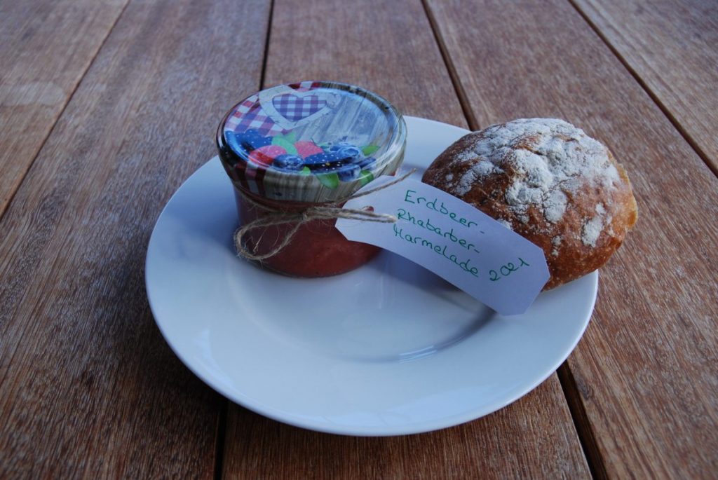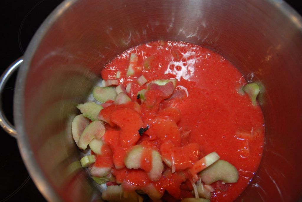 Hier kochen wir Erdbeer Rhabarber Marmelade