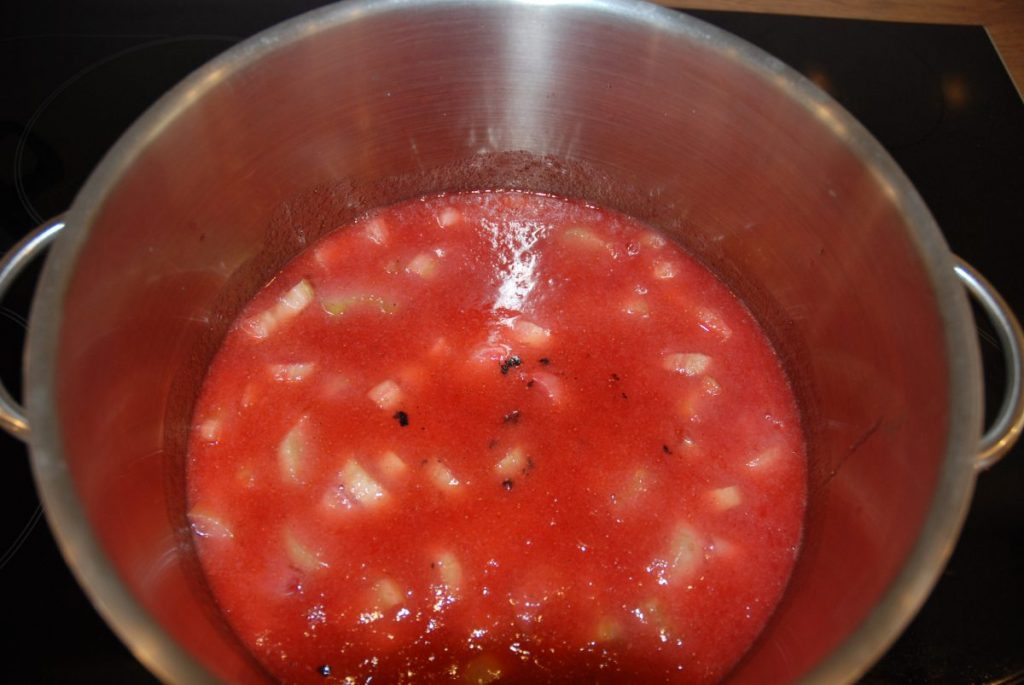 10 Min sprudelnd aufkochen, in heiss ausgespülte Einmachgläser füllen.