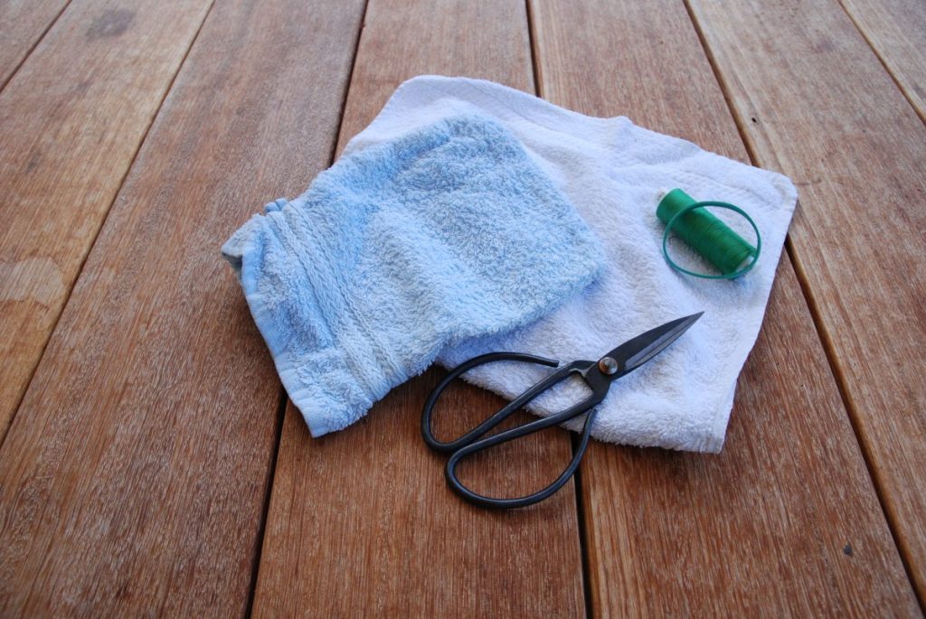 Hier eine nachhaltige Variante aus gebrauchten Handtüchern (alternativ ökologische Schwammtüchern verwenden).